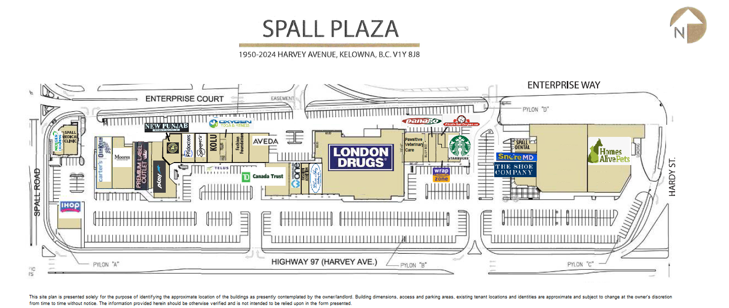 Located along Highway 97, the main commercial artery of the city, Spall Plaza is a major retail shopping center located in Kelowna, BC. Anchored by London Drugs, Homes Alive Pets, and TD Canada Trust, Spall Plaza offers over 157,000 square feet of retail stores and restaurants to serve the prime business, residential, and recreational districts in this largest community of the Regional District of Central Okanagan.
